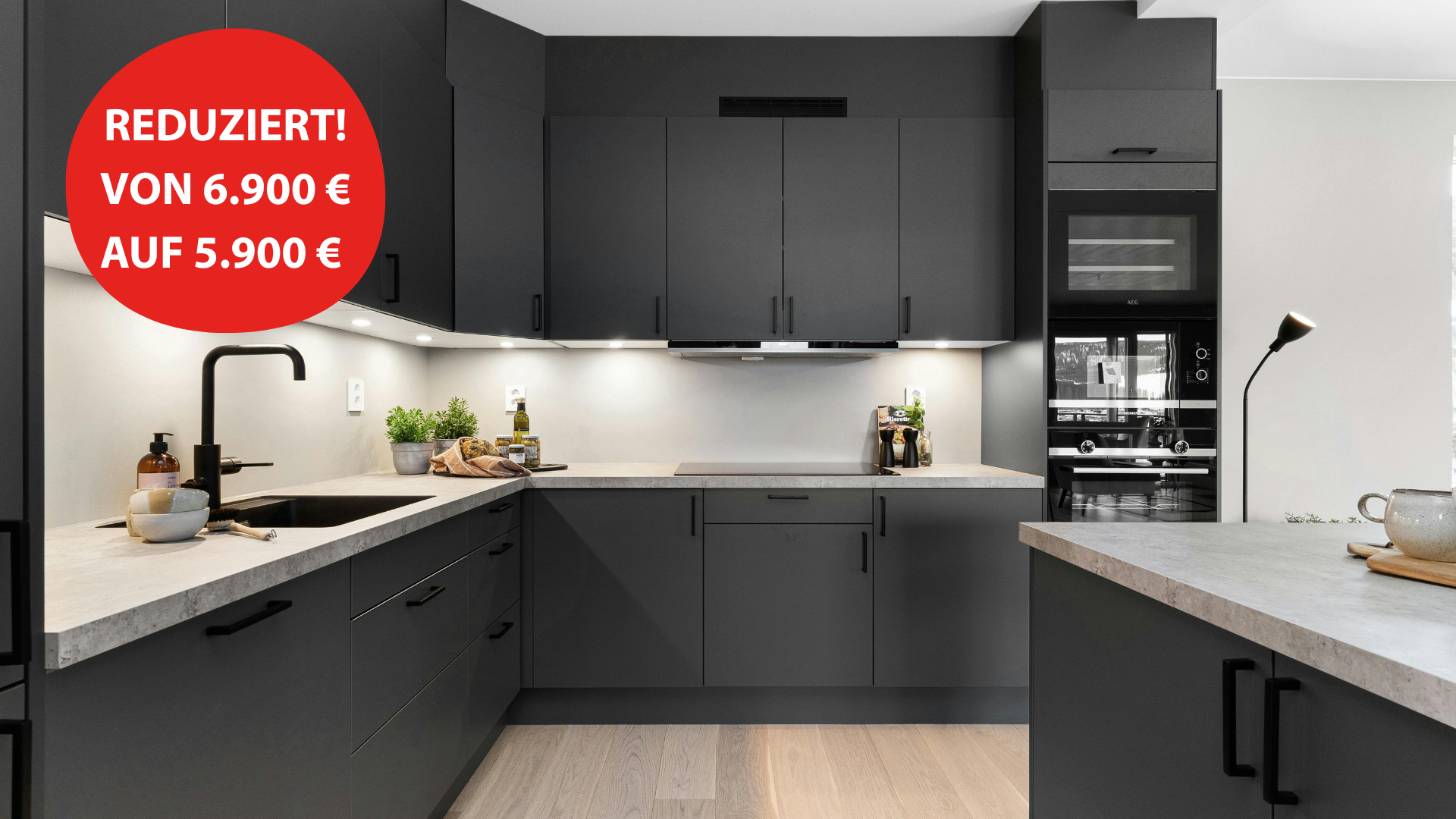 Aufgepasst, wir haben diese Ausstellungsküche um weitere 1.000 € von 6.900 € auf nur noch 5.900 € REDUZIERT.