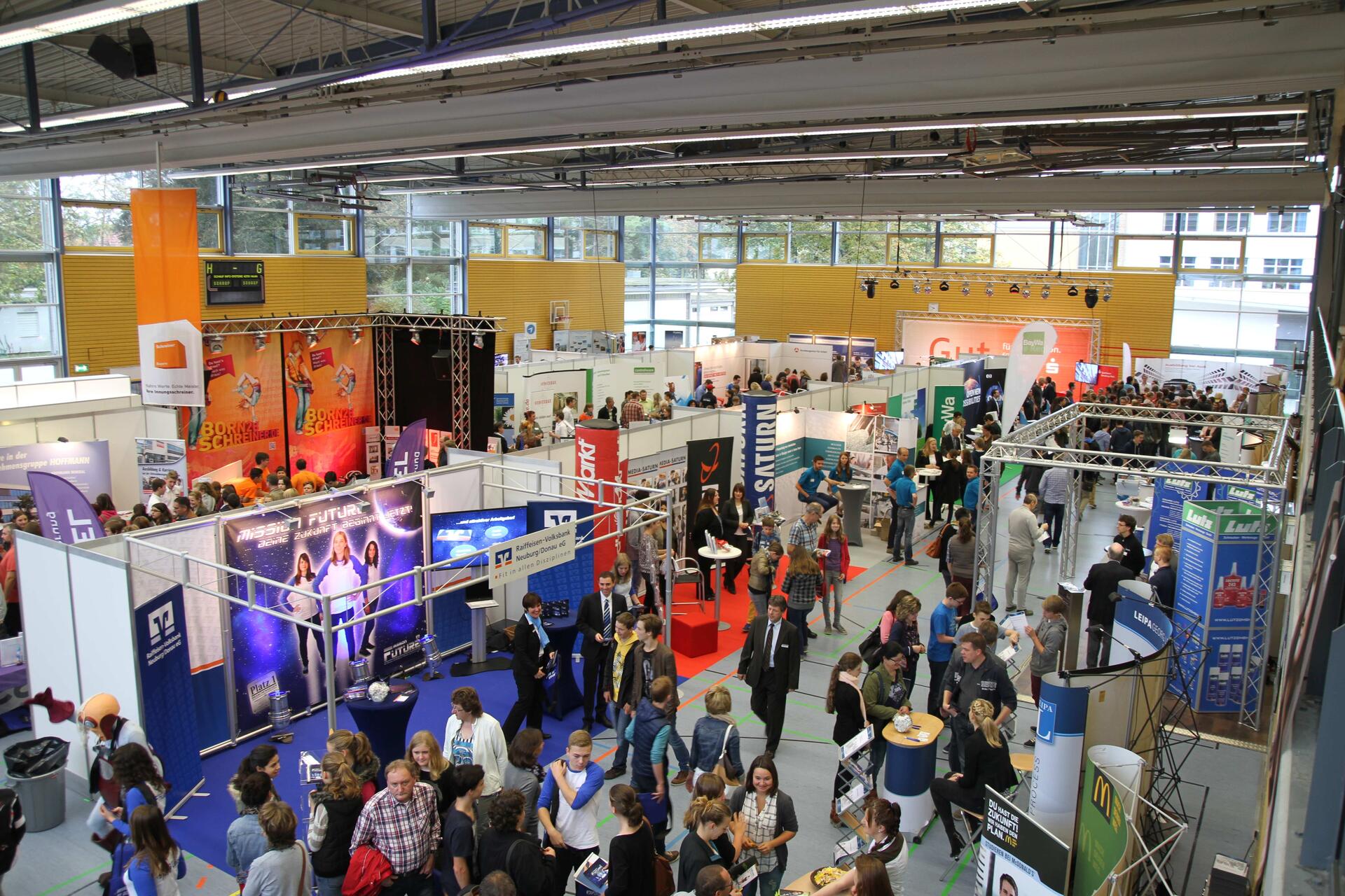 Die Suche nach einem Ausbildungsplatz oder die Wahl eines Studiengangs ist eine der großen Herausforderungen zum Ende jeder Schulkarriere. Dabei gilt es zunächst, sich einen Überblick zu den vielfältigen Aus- und Weiterbildungsangeboten zu verschaffen. Darüber hinaus werben die heimischen Firmen auch aufgrund der demographischen Entwicklung um gute Nachwuchskräfte. Vor diesem Hintergrund organisieren der Stadtmarketingverein gemeinsam mit der Stadt Neuburg die „A-Zu-Bi!“, eine der führenden Ausbildungsmessen im gesamten mittelbayerischen Raum.