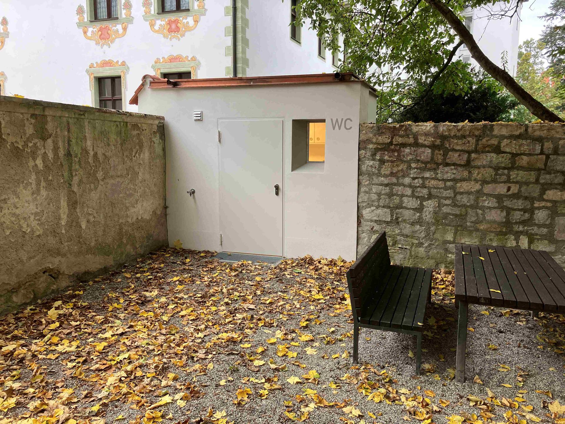 Die neue WC-Anlage ist für Erwachsene, Kinder und Menschen mit eingeschränkter Mobilität konzipiert. Obendrein wird ein klappbarer Wickeltisch angeboten. Die Anlage ist zwar nicht beheizt, jedoch mit einem Frostwächter ausgestattet und ganzjährig benutzbar. Ein elektronischer Schließzylinder erlaubt den Zutritt ab 9 Uhr und schließt das Gebäude automatisch um 20 Uhr.