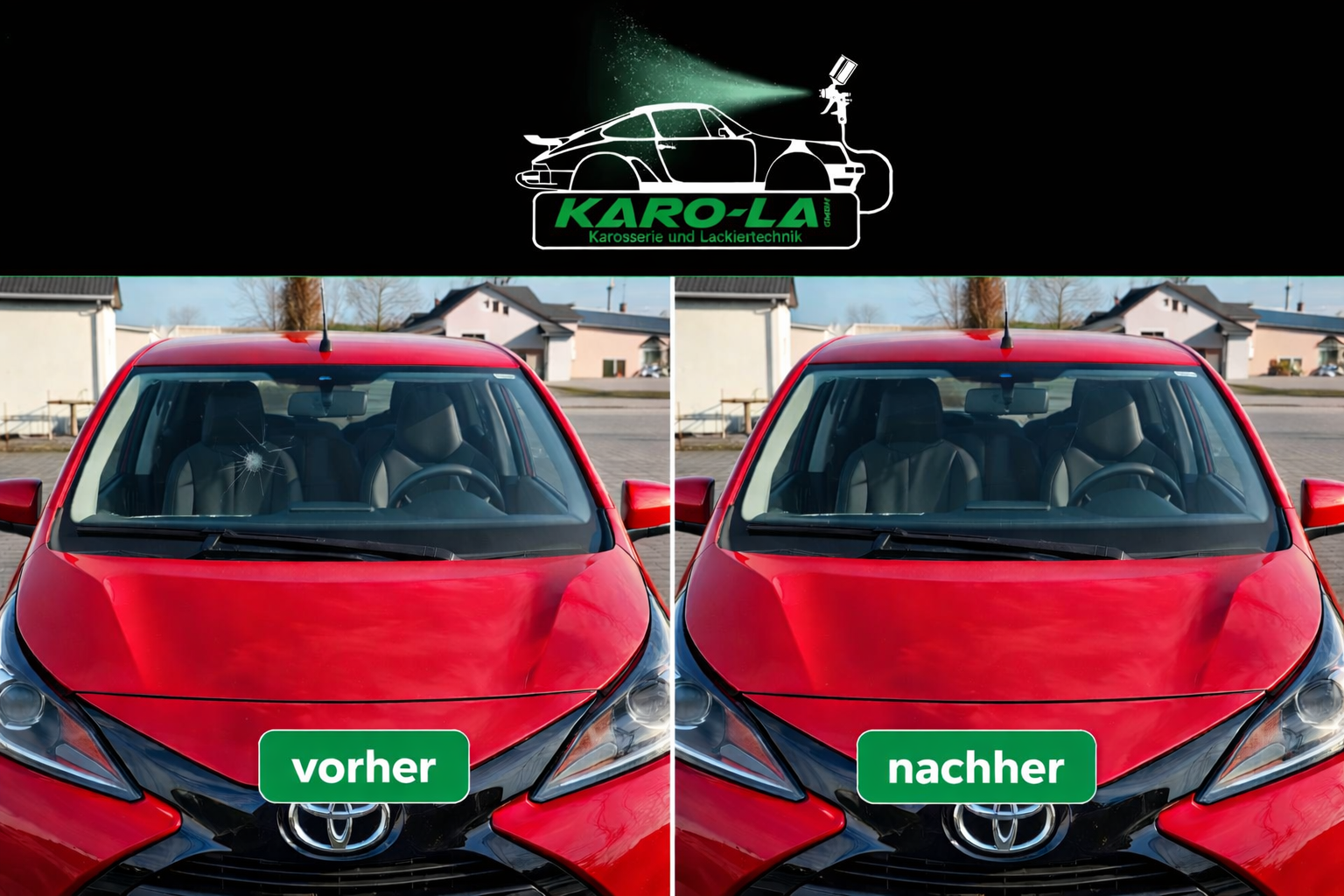 Die Karola GmbH bietet eine fachgerechte, schnelle und sichere Steinschlagreparatur, um Folgeschäden zu vermeiden und die Sicherheit zu erhalten. Auf Wunsch ist auch eine Abrechnung über die Versicherung möglich.